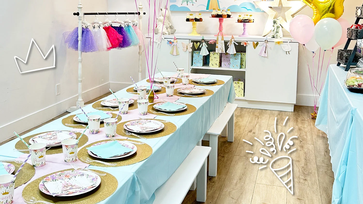 Below you’ll find some of our most popular party themes, each with custom decorations, themed tableware, coordinated balloons, and all the details that make a kids’ birthday party feel extra special. But these are just the beginning — we’ve done hundreds of different themes, and if you don’t see what you’re looking for, just ask. Depending on the party package you choose, we can help you bring any idea to life. And it’s not just birthdays — families book Kids Hideout for baby showers, gender reveals, team celebrations, graduations, and holiday parties too. Every package is flexible: go all-in with a fully decorated theme or keep it simple with a DIY setup and make it your own. Private venue, zero stress, and a celebration your kids will actually remember.